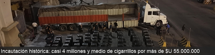 En las últimas horas la Dirección Nacional de Aduanas incautó casi 4 millones y medio de cigarrillos con un valor estimado superior a los U$S 1.300.000, en un operativo realizado en un control de ruta en la localidad de José Enrique Rodó, Soriano. El conductor intentó evadir el mismo, desviándose metros antes, pero fue rápidamente interceptado.