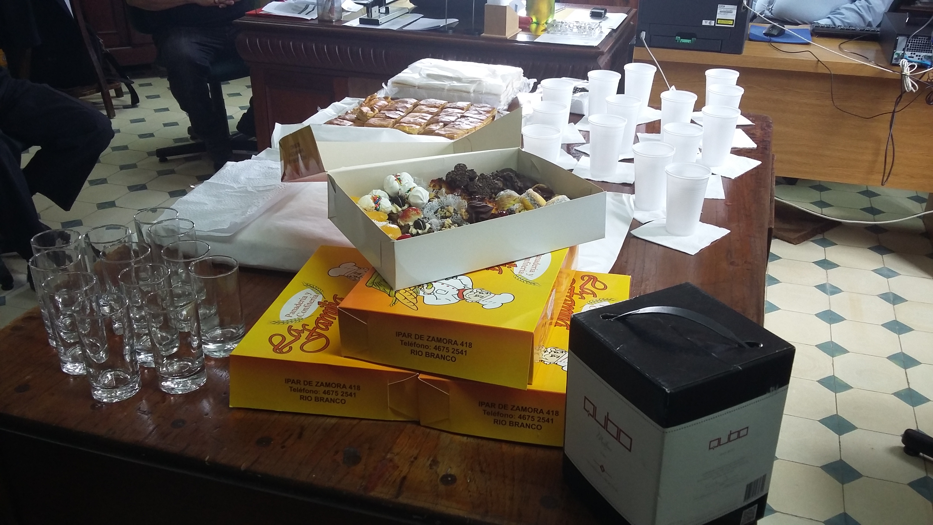En la Administración de Aduanas de Río Branco se realizó una pequeña reunión y se reconoció por sus 38 años de labor a los compañeros Wilmar Texeira, Wiliam Bordachar y Luis Grajales.