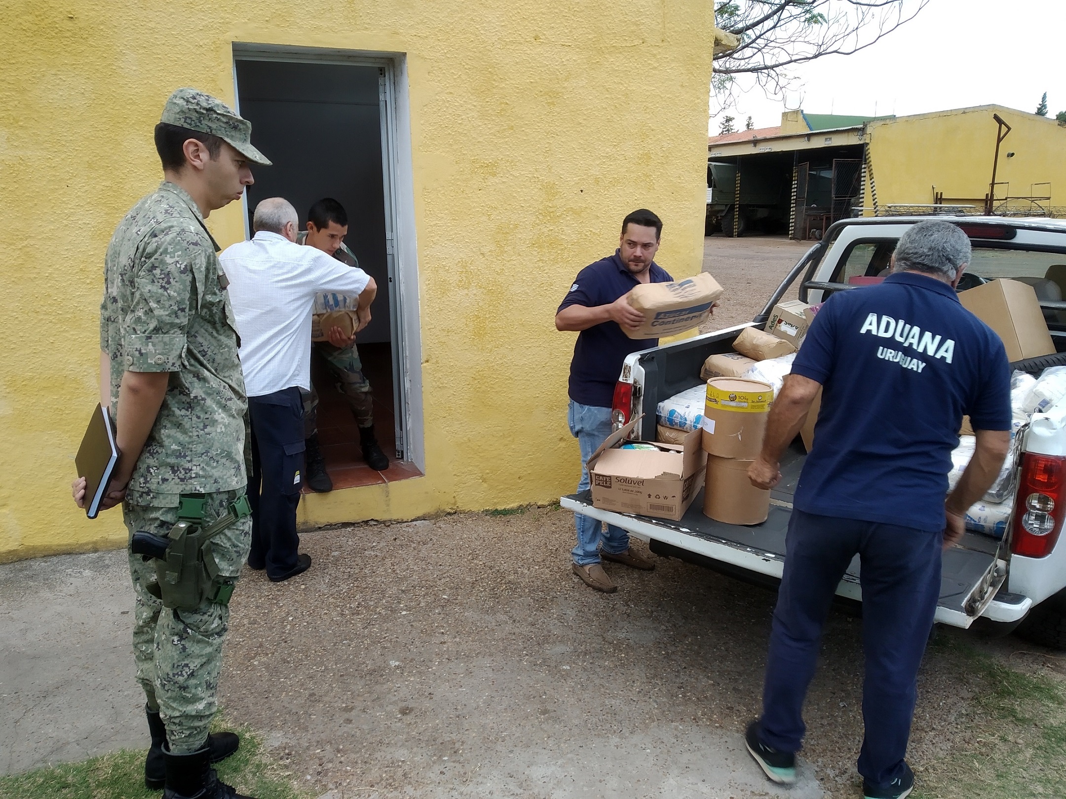 El donativo fue entregado por parte de los jerarcas de Aduana de Salto a la Directora departamental del MIDES en las instalaciones del Batallón de Infantería Nº 7. Estos artículos serán utilizados –de acuerdo a lo dispuesto por las autoridades del ministerio- para crear canastas que se entregarán a los hogares más vulnerables del departamento.