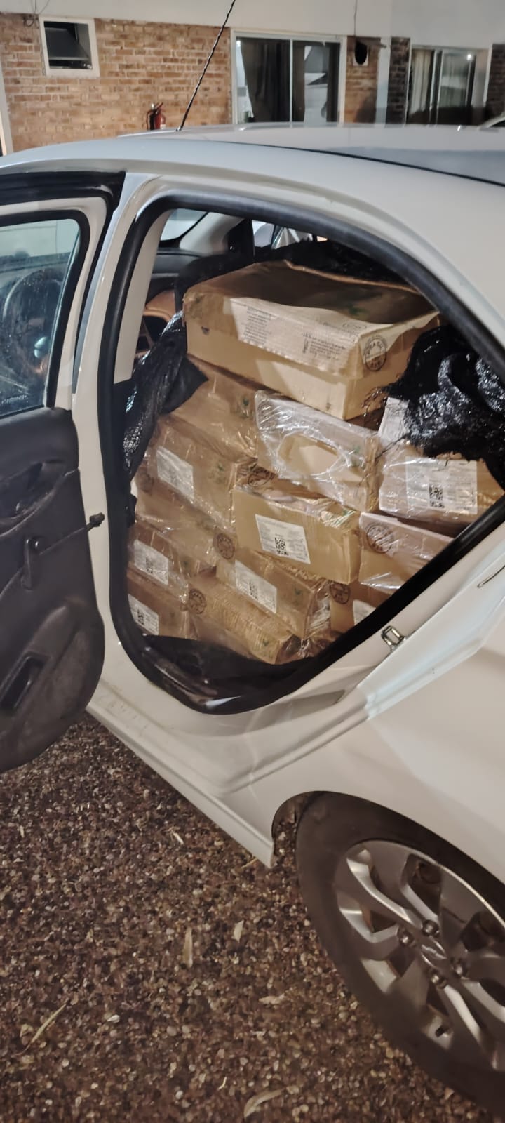 Personal de Aduana Móvil Oeste y Administración Salto, brindaron apoyo a personal de Investigaciones de Jefatura de Salto, quienes en operativo logran la detención y realización de inspección de un auto chery QQ, el cual llevaba en su interior un total de 216 pastas dentales, 45 cajas de caldo de 24 unidades, 76 paquetes de papas pay por kg, por lo cual enterada la Justicia competente dispuso la incautación de la mercadería y del vehículo, todo lo que fue valorado por personal de Aduanas en $U 235.200.-