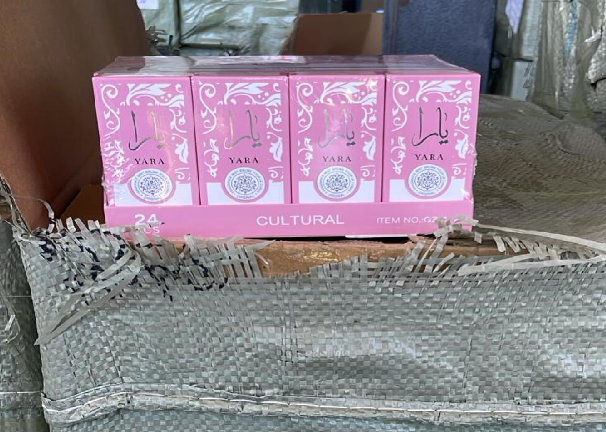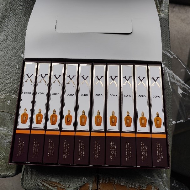 Realizado el control se comprobó la existencia de 853 cajas con perfumes que simulaban ser de las marcas “AFNAN”, “CAROLINA HERRERA”, “PACO RABANNE”, “VERSACE”, “DIOR”, “HUGO BOSS”, “LATTAFA”, “CHANEL”, “YVES SAINT LAURENT”, “JEAN-PAUL GAULTIER”, “ARMAF” y “XERJOFF”.