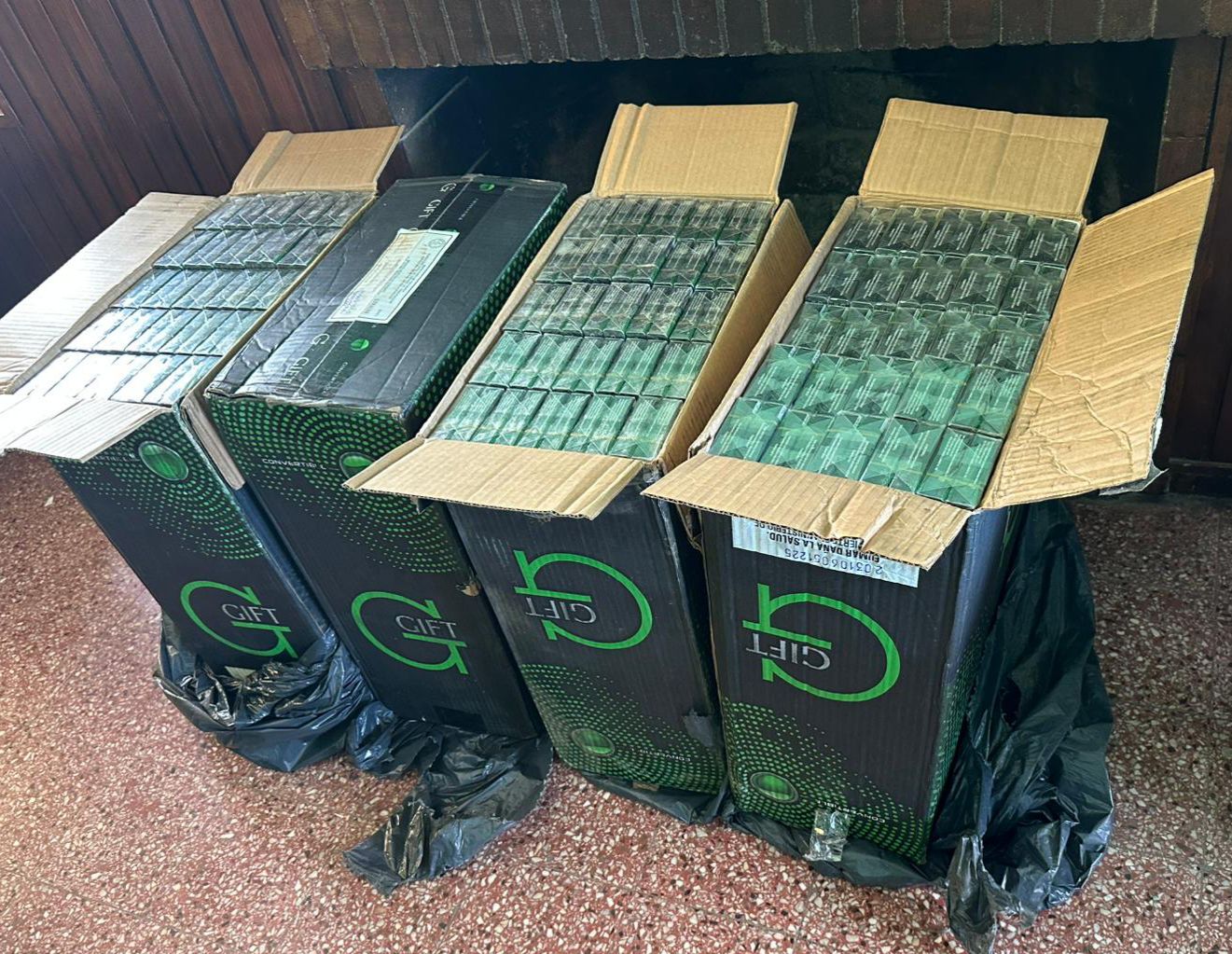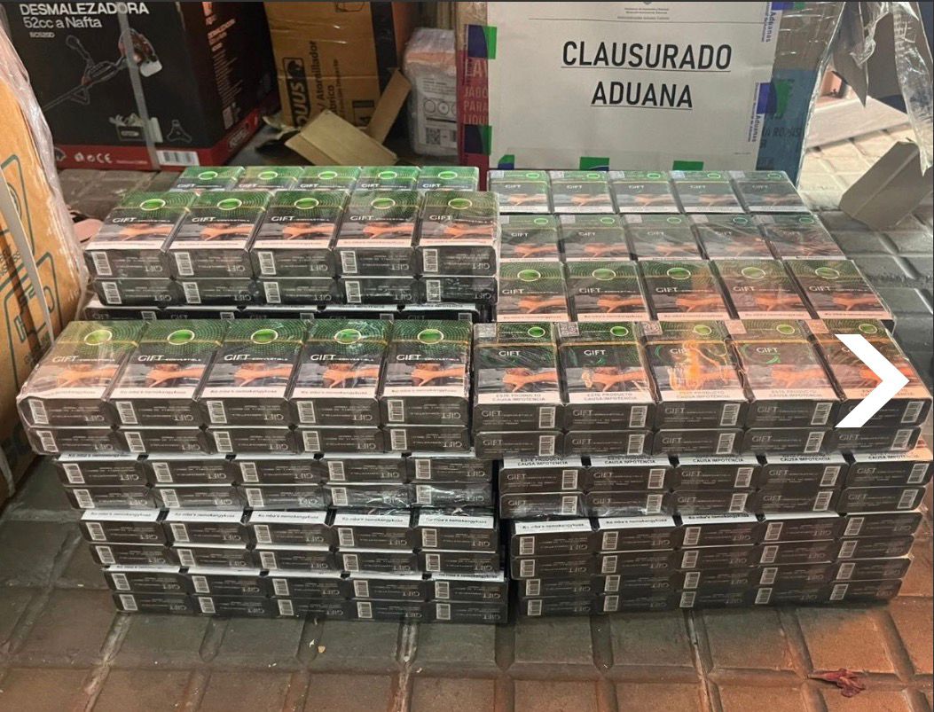 En otro procedimiento realizado sobre la Ruta Nacional Número 3, personal de Policía Caminera en conjunto con funcionarios de la Aduana Móvil Regional Oeste interceptaron un camión que transportaba 40.000 cigarrillos marca Gift, valorados en 440.000 pesos.