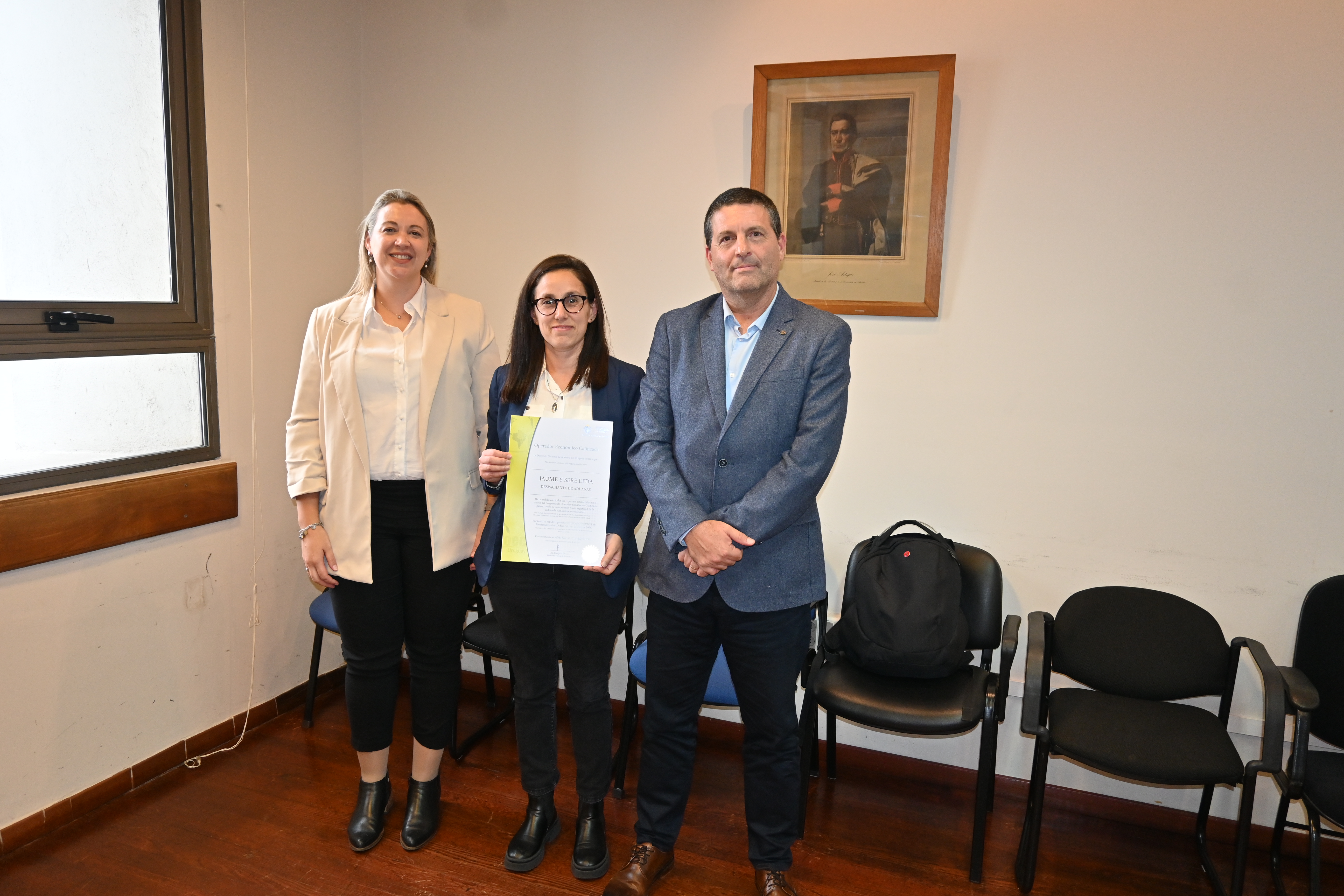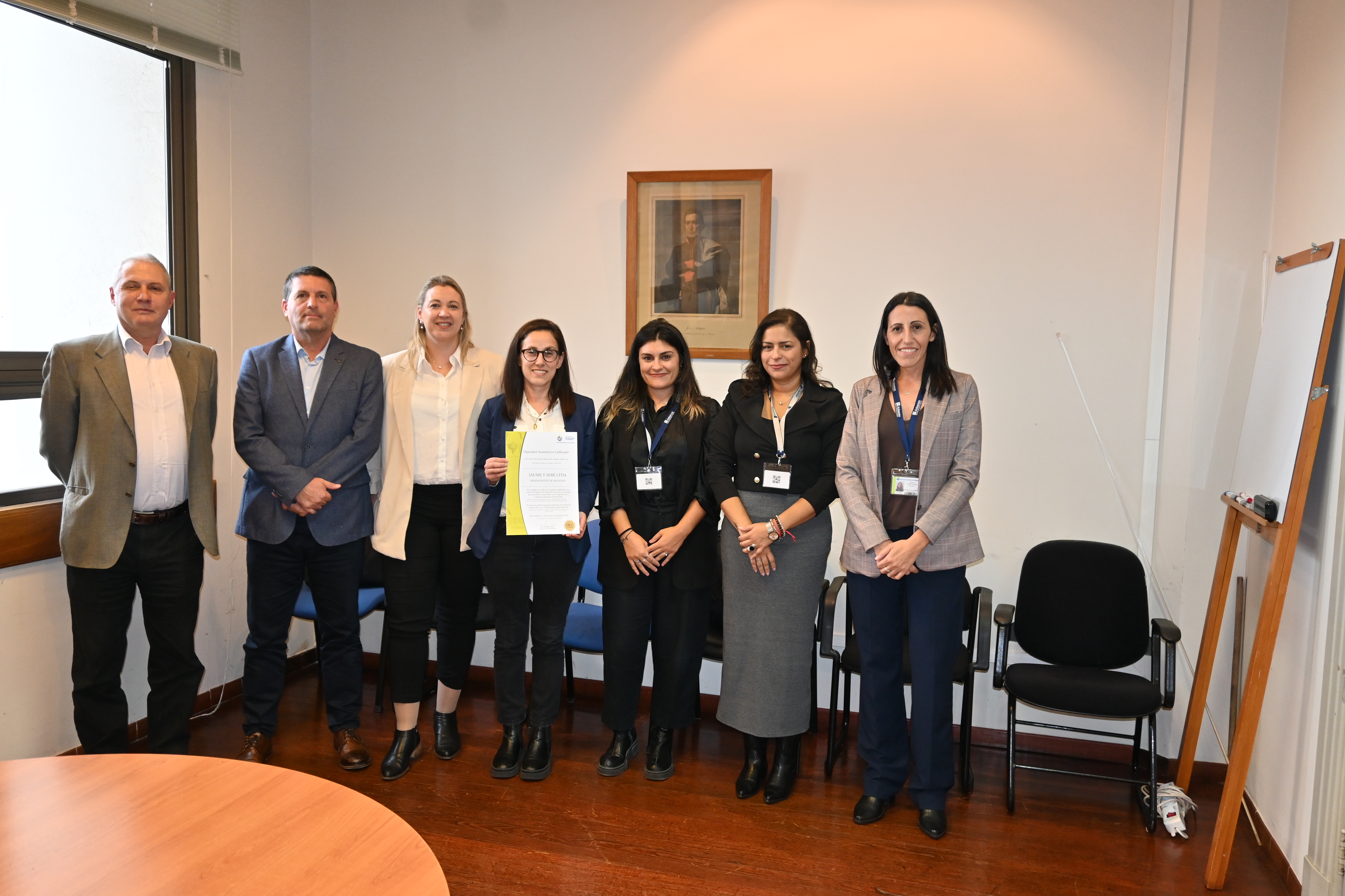 La distinción fue recibida por el Sr. Fernando Thul, la Sra. Alicia Viñoles y la Sra. Lorena Pintos. Por la Dirección Nacional de Aduanas participaron el Lic. Álvaro Palmigiani, Gerente del Área Gestión de Comercio Exterior; la Lic. Mayra Pérez, Directora del Departamento Operador Económico Calificado y miembros del equipo auditor.