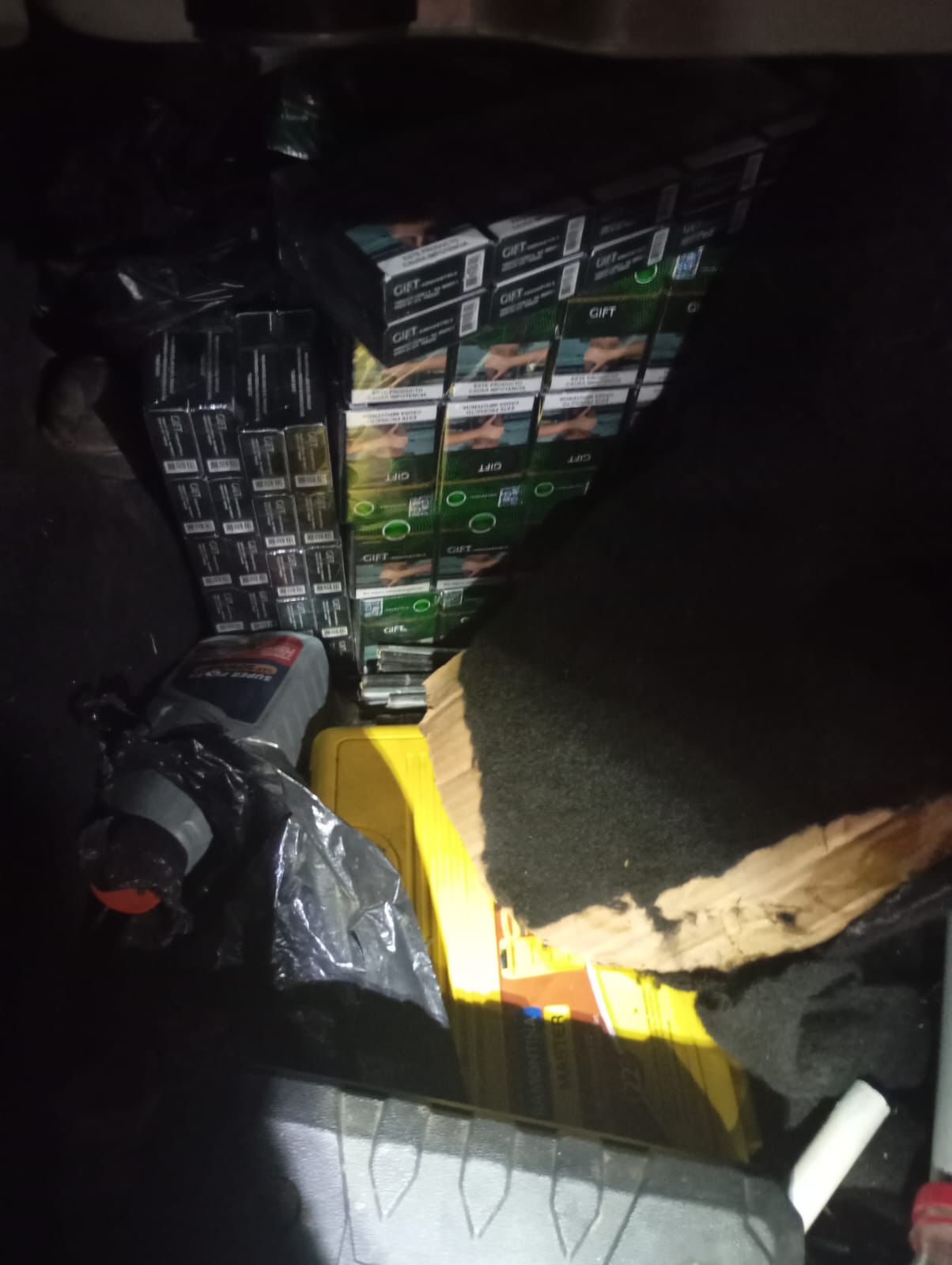 Al realizar el mencionado control se constató que el vehículo transportaba 46.200 cigarrillos marca Gift, ocultos en el guardabarros trasero y en el interior del auto.